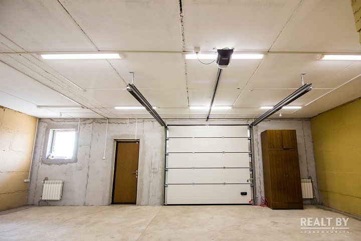 На цокольном этаже, площадью 240 квадратных метров, предусмотрено размещение склада или гаража на несколько автомобилей, установлены автоматические ворота высотой 2,7 метра.