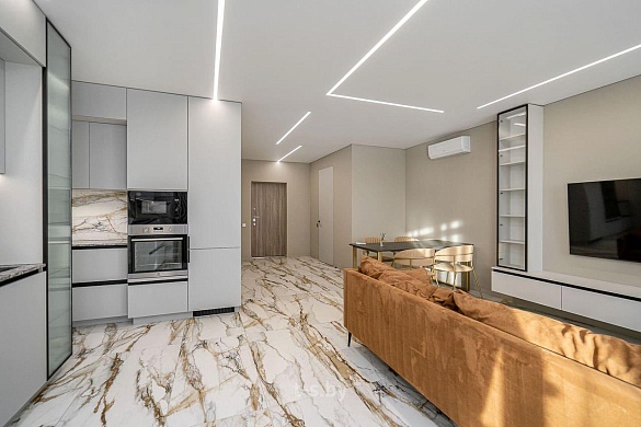 Двухкомнатная квартира в уникальном жилом комплексе «D3». Комплекс включает в себя целый спектр помещений для нового ощущения качества жизни: изысканные входные лобби с консьержем, колясочные, велосипедные, комфортный паркинг, удобная и функциональная придомовая огороженная территория. Круглосуточное видеонаблюдение, электронный контроль доступа обеспечат безопасность для Вас и Вашего имущества. 4 испанскими лифтами ORONA - никаких очередей. В квартире выполнен стильный ремонт из качественных материалов. Площадь 75 кв.м. Полная комплектация всей необходимой для комфортного проживания мебели и бытовой техники. Для хранения одежды оборудован вместительная гардеробная. Есть личное место в подземном паркинге. Просторная лоджия открывает вид на зеленую зону и водоем. Все новое!