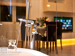 В квартире большое количество мест для хранения. 3 санузла: душевая комната с туалетом и умывальником, гостевой туалет с туалетом биде и умывальник, а также отдельной ванной комнатой с автономной ванной и умывальником, все три покрыты итальянским мрамором и пол с подогревом, с хромированными решетками для полотенец.