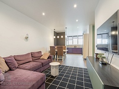 Стильная квартира-студия в жилом комплексе «Нарочанский». Новый дом 2019 года постройки, видеонаблюдение, рядом детская площадка. Выполнен стильный дизайнерский ремонт из качественных материалов. Общая площадью 75,5 кв.м. Квартира полностью укомплектована необходимой мебелью и бытовой техникой для комфортного проживания: посудомоечная машина, стиральная машина, холодильник, телевизор ЖК, кондиционер.