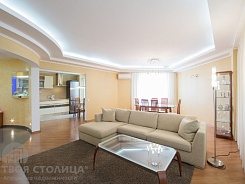 Просторная трехкомнатная квартира, общей площадью 127 метров квадратных, расположена в хорошем доме с охраняемой парковкой и подземным гаражом. Квартира в центре Минска, рядом парковая зона отдыха, Комсомольское озеро, крупный торговый центр, детская площадка, благоустроенный двор. В квартире сделан современный дорогостоящий ремонт из высококлассных строительных материалов. Квартира полностью укомплектована всей необходимой мебелью и бытовой техникой для комфортного проживания: ЖК– телевизор, посудомоечная машина, стиральная машина автомат, холодильник, кондиционер и другая мелкая бытовая техника. Есть личное место для парковки авто на закрытом паркинге. Прекрасный панорамный вид на зеленую зону!