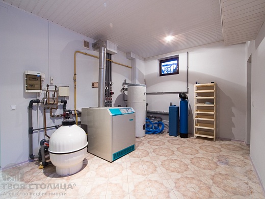 Коттедж оборудован: стеклопакеты, пол - паркет, пол - с подогревом, сантехника новая, ванна угловая, душевая кабина, стиральная машина автомат, посудомоечная машина, кондиционер, камин, мебель, холодильник, телевизор, баня/сауна, бассейн.