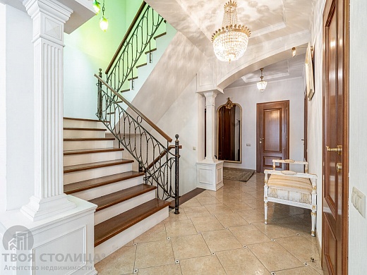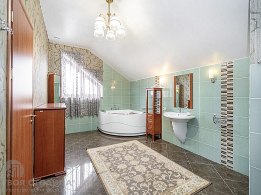 Выполнен качественный ремонт. Грамотная планировка. Дом – два уровня и цокольный этаж. На первом этаже: кухня, гостиная, санузел, комната отдыха, кабинет, прихожая. На втором этаже: четыре спальни и два санузла. В цоколе: сауна, бильярдная, котельная, кладовая комната и санузел.